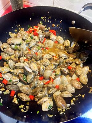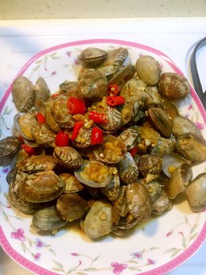 炒至大多数蛤蜊都开口后就可以装盘啦!
