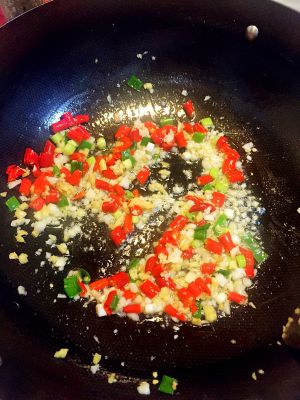 大火起锅放适量的油,爆香葱姜蒜沫,小米辣稍后放进去。