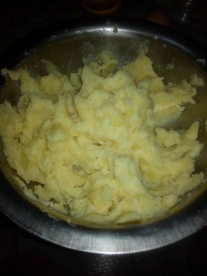 蒸好的土豆捣泥,加入一个鸡蛋。