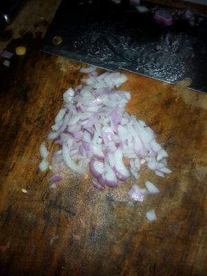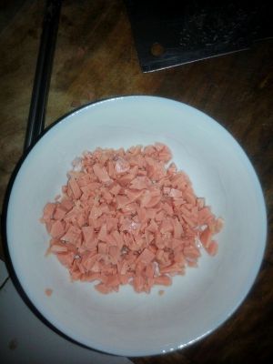 萝卜我用了一根,买大了,应该买中等一点正好,切成丁(我是直接擦成粗丝然后切的,呵呵!)