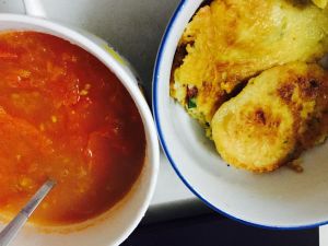 再快手弄个番茄汤下糖,这样配上土豆饼。就又是简单的一人食啦,早餐来的其实(/ω\)