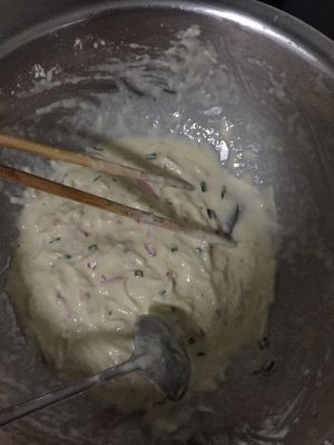 萝卜挤干水分后把所有材料与面糊混合,盐味精少许调味 (我这次就有点失败,水没控干•﹏•)