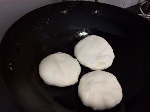 在锅里放少许油,锅热放可以放下,烤饼了。
