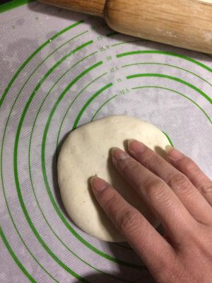 将面团分成适量大小,擀面皮,包入土豆泥即可。