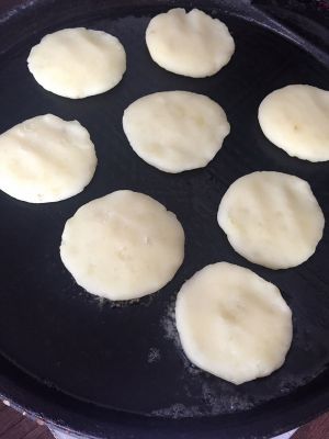 在电饼铛或蒸锅上刷一层油,将土豆泥揉成小球压扁,油热后放入土豆饼,也可做成自己喜欢的任何形状