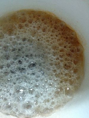 这时糖浆会慢慢变色,直到呈浅浅的琥珀色,糖浆就熬好了。
