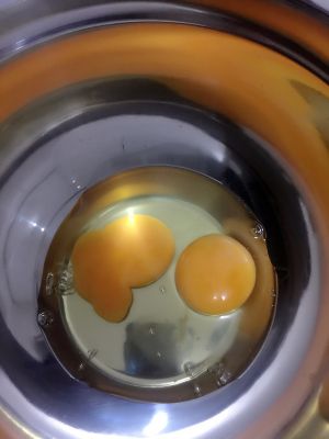 二个鸡蛋打匀,加入白糖50g,牛奶250克
