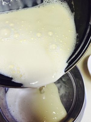 将蛋液倒入已冷却的液体中,注意不要一次性全部加入,分批慢慢倒入,搅拌充分!
