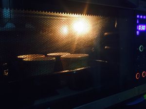 烤盘放入预热好的烤箱中层,160度,40分钟左右。