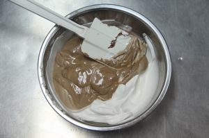 再将拌好的面糊加入另一半蛋白霜中拌均匀即可