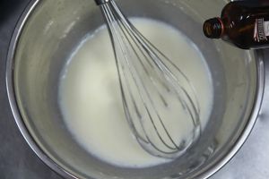 提拉米苏粉加入牛奶中搅均匀,再加入君度酒拌均匀,待凉