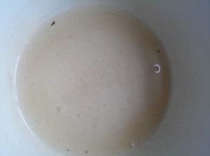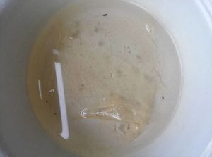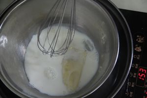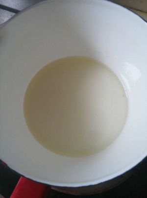 吉利丁片倒掉冷水,隔水加热融化成液体