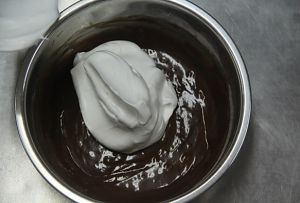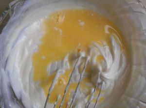 把步骤6的鸡蛋糖水液分次加入到马斯卡彭中,再分次加入吉利丁液