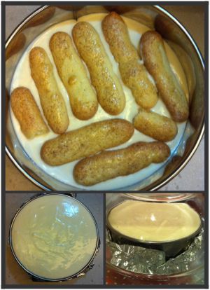 接着用同样的方法铺第二层手指饼,再倒入全部的奶酪奶油糊,放冰箱冷藏一夜。