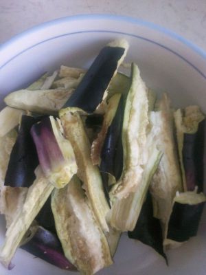 茄子用手撕成小块,请忽略照片上大小不一的茄子。。。