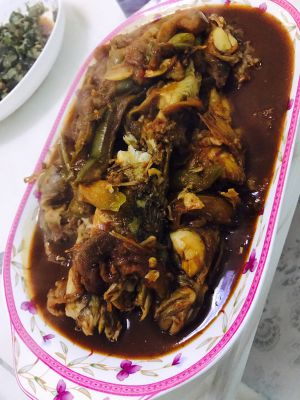 下锅葱姜蒜炒香、放入拌好的酱料、下入海鲶鱼、后加水、冒过鱼就可以、(这段忘拍照了)