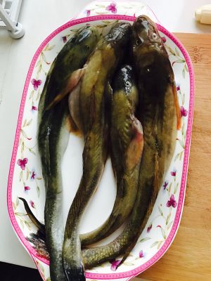 鲶鱼去除内脏、鱼鳃,收拾干净,切成5cm 宽的段。香葱择洗干净,打成结。干香菇泡发后去蒂洗净,沥干水分待用。