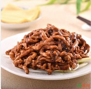 锅中放油,把腌制好的肉丝倒进去,炒成肉丝全部变色至八成熟捞出备用,锅里加入葱,姜,蒜炒香,倒入肉丝,并加调好的酱汁炒均匀,酱汁烧开后加入适量水淀粉收汁即可。