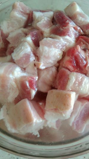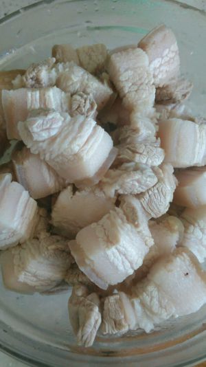 五花肉,切成1.5*1.5cm的方块,用水浸泡10分钟