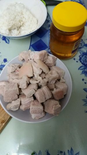 起油锅,放冰糖和蜂蜜,等冰糖熬化加入肉和小料爆炒。
