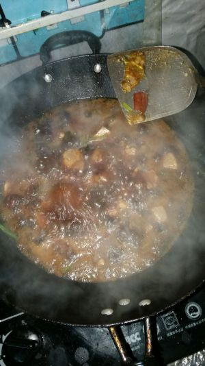 加刚才的肉汤,水没过肉,加老抽酱油,生抽,耗油。慢慢炖!(一定要耐心慢慢炖)最后可以加生粉勾芡。不加也没事