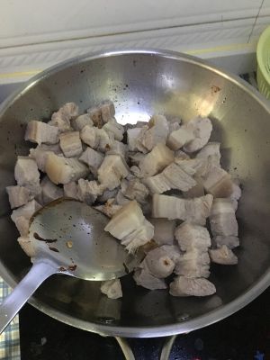 小火不断翻炒十分钟,把油慢慢的炒出来,这样肥而不腻