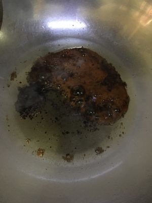 炒糖色,放入冰糖,小火慢炒,将糖炒化。这步火大容易糊。
