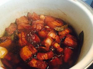 盛出红烧肉,淋上酱汁,上桌,红烧肉做法在君宝另一个"老爸红烧肉"的菜谱里有