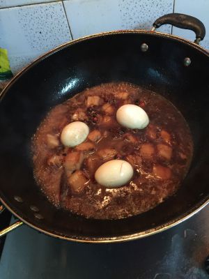 然后放入事先蒸好的鸡蛋。中火闷煮20分钟左右。