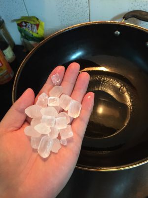 锅烧热,加入食用油,放入适量冰糖,可根据个人口味增加或者减少。