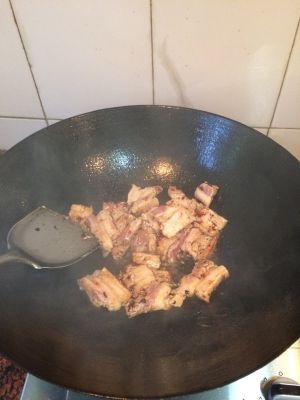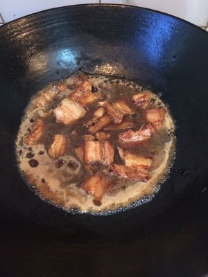 倒进去沥干水的肉,炒到染上糖色