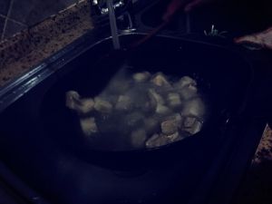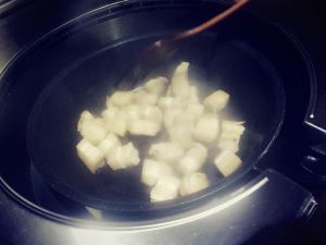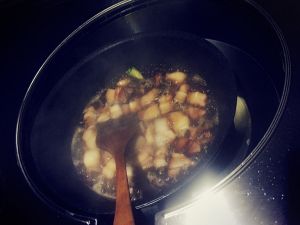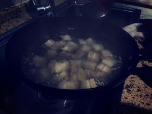 倒进去一些温水或者热水,我都倒的比较多,大火开锅,然后用小火大约炖三十分钟。(盖锅盖)