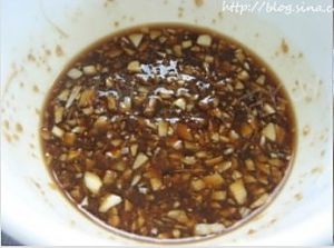 用姜末、蒜末、盐、海鲜酱油、蚝油、糖、香醋调成汁。