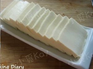 1.内酯豆腐切丝 放水中备用