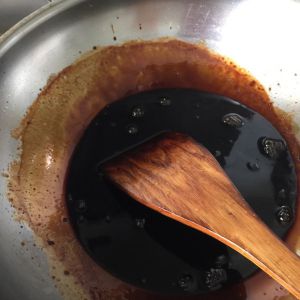 家里没有红烧酱油了,懒得出去了。普通酱油加红糖,不停搅拌融化。0k,倒入碗中备用