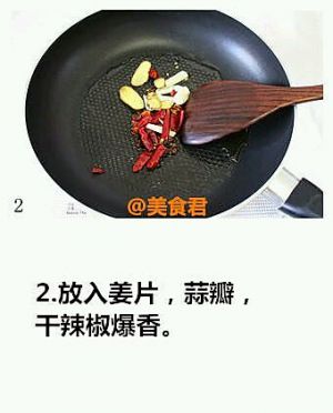 把一块姜刮掉皮切成姜丝,把大蒜拍烂去掉皮切小块,葱根留大块,葱径切很小段,干辣椒切中等长度,锅里放点油微火加热,把姜,大蒜,葱根,干辣椒一起放到锅里翻炒几下倒小盘子里待用。