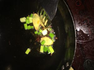锅里放入葱姜八角