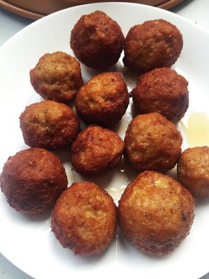 团成肉丸,锅里放油炸至金黄捞出