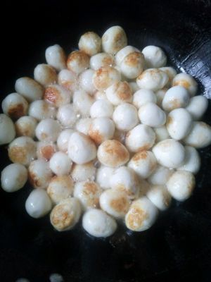 炒到微黄时候,红糖下去,再加黄酒,