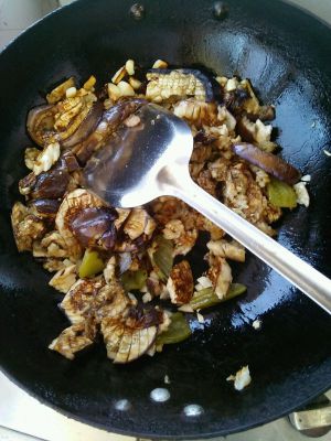 炒至茄子皮发皱变软。