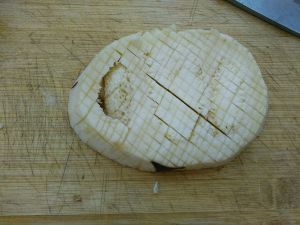 茄子打麦穗花刀,双面打,