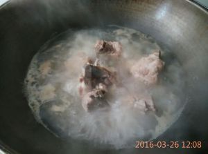 准备食材,洗净,切好备用。我用高压锅,排骨切大块些,喜欢用排骨头,肉在前夹较嫩,且有骨髓。