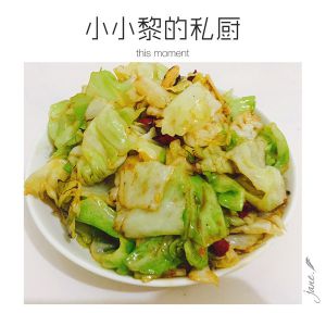大火,热锅下多些油,放入花椒爆香后丢弃,再放蒜蓉,葱末,干辣椒爆香,放入包菜翻炒,快熟时倒入蚝油翻炒,然后生抽沿锅边淋入,翻炒均匀,炒熟出锅。
