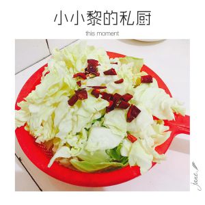 放包心菜和干辣椒一起炒,注意全程都是大火炒,不加水(干锅菜不加水)