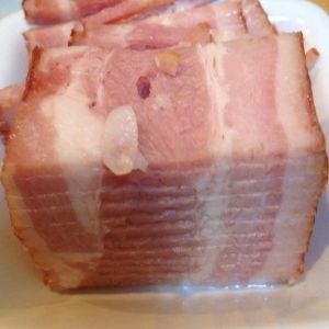 锅里放油,蒜葱爆香放五花肉炒至五花肉略卷,五花肉里的荤油炒出
