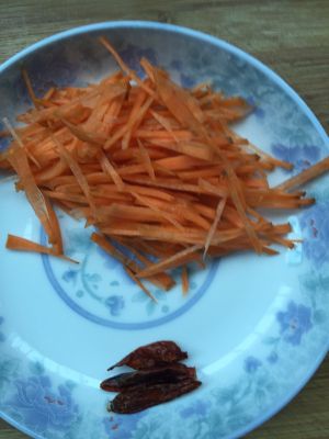 胡萝卜洗净,切丝备用 朝天椒干,洗净,备用