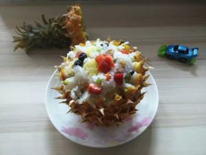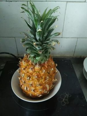 菠萝划十字刀将果肉挖出来中间的比较硬,我没用。