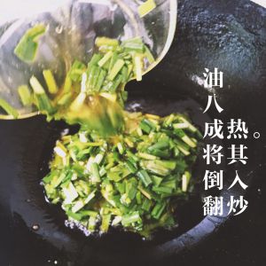 一定要记住韭菜要急火快炒,那样不老,要是老了口感会很不好,再就是不会出汤作品也好看