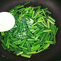 原锅加适量油再次烧热,倒下韭菜花保持大火翻炒片刻,加少许盐、鸡粉。