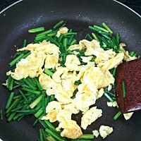 锅中留油,放入韭菜炒至断生加少许盐和蚝油,再加入鸡蛋拌匀。
